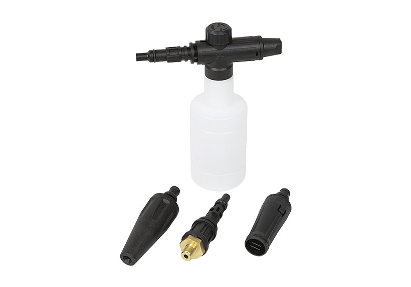 В комплекте пеногенератор с регулятором подачи пены, а также переходник для использования профессионального "итальянского" пеногенератора, который можно приобрести отдельно.